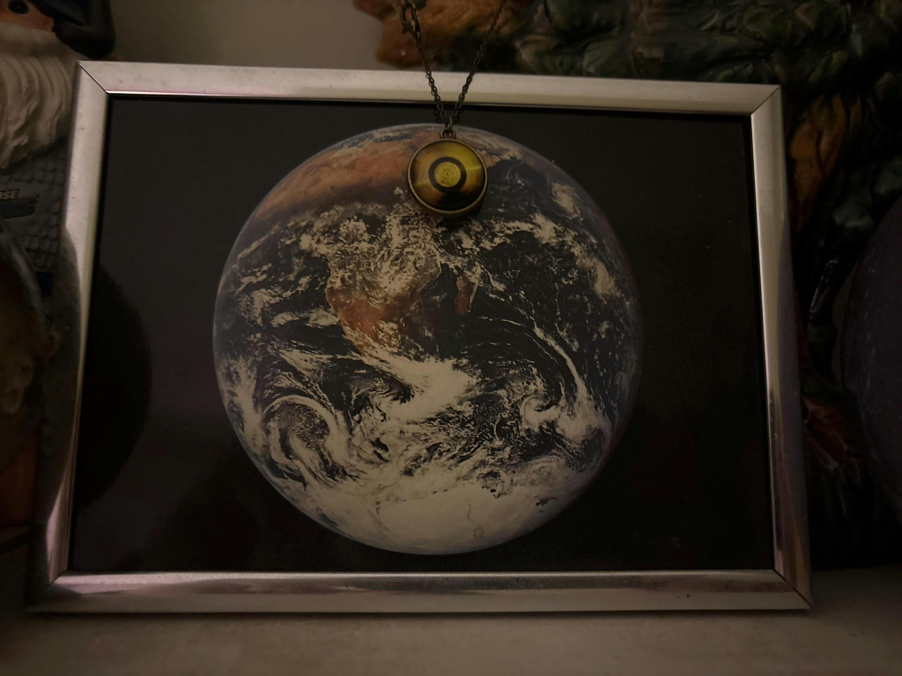 This double-sided antique bronze necklace is a celebration of our humanity and species as a whole, with the design of the Golden Record from the Voyager Probe launched by Carl Sagan and his team in 1977 into the vast ocean of space. The gold disc includes music, scientific thought, language, directions, anatomy - tiny pieces to the complicated human puzzle in hopes that one day we may communicate with others and let our presence be known in the cosmos. Learn more about this beautiful project here. As seen on IFLS!